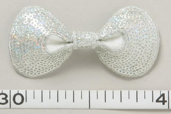 | 詳細 | 全面にスパンコールが刺繍されたリボンのモチーフです。 ミニサイズなので衣裳にたくさんつけてもok! 蝶ネクタイにも最適サイズです。 |