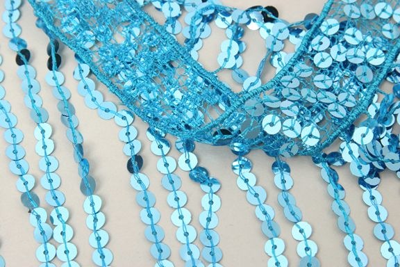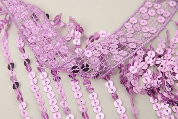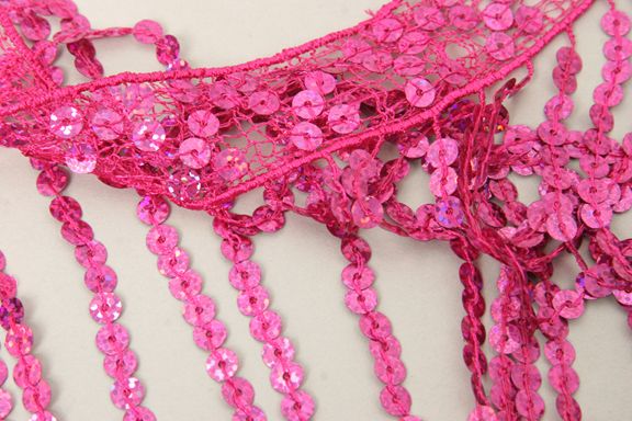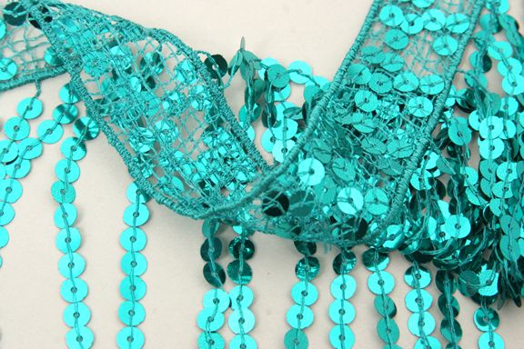 スパンコールを糸で留めてフリンジ状にした商品です。動くたびに揺れ、躍動感が出ます。 ※在庫限りで終了となります。 |