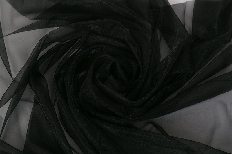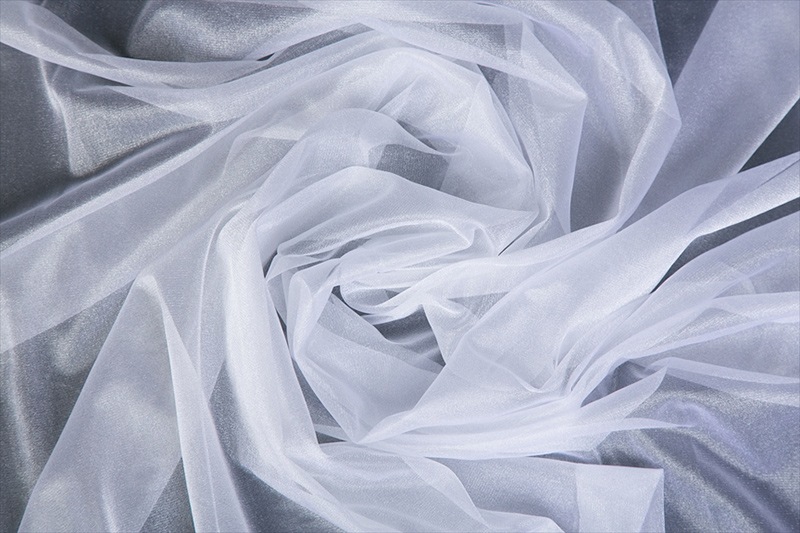 ふわふわと軽いトリコットです。よこに少し伸びます。 繊維の質感でキラキラしています。 裁ち端がほつれないので軽めのパニエに最適です。 |