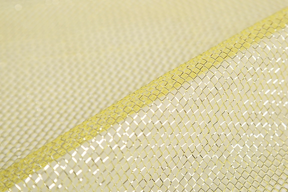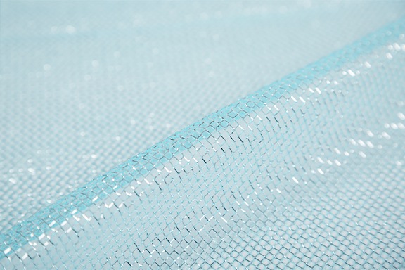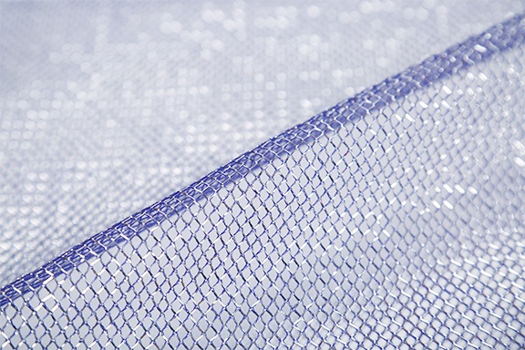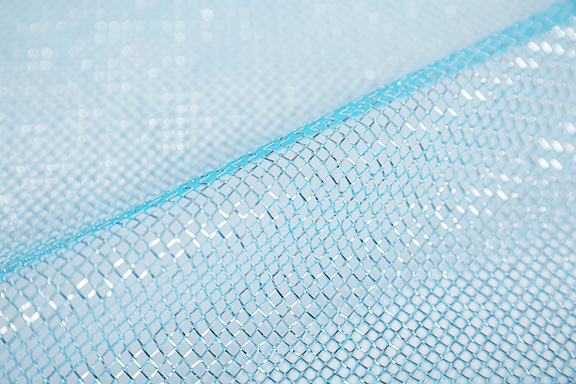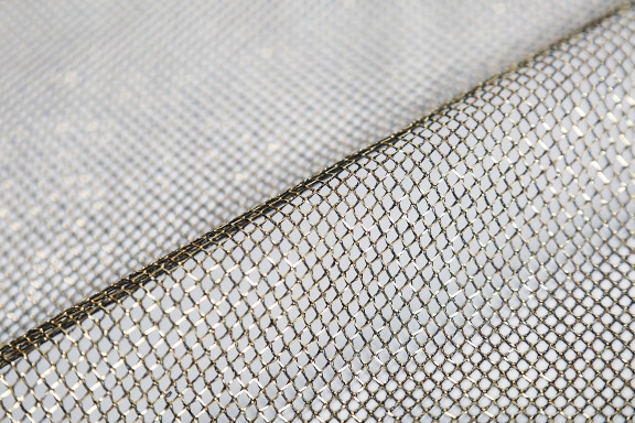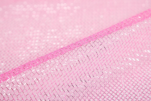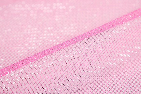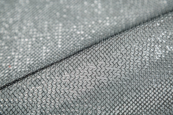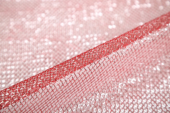 | 詳細 | ダイヤネットの表面にラメ糸を織り込んだ生地です。 横方向に伸縮します。 ハリのある生地です。 |