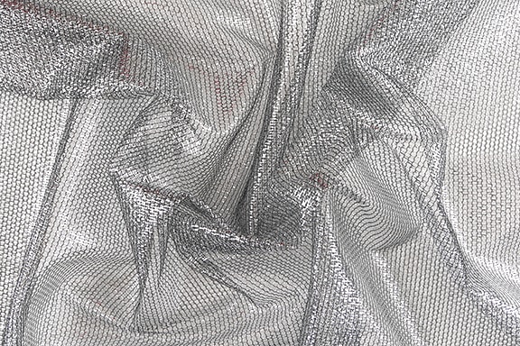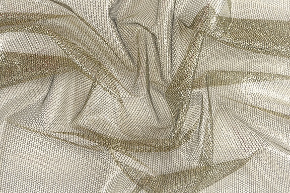 | 詳細 | 白色のたて糸にラメ糸をはしご状に絡ませたチュールです。 太めの糸を使用しておりざっくりとした編み目になっています。 |