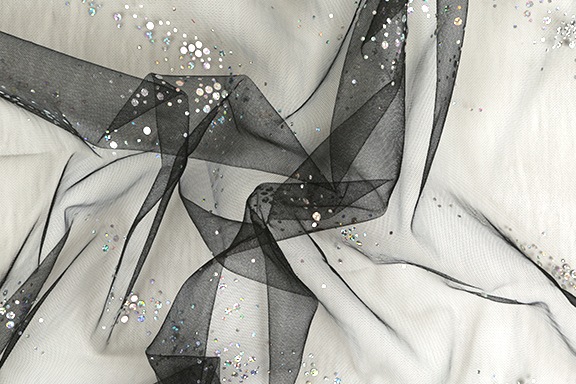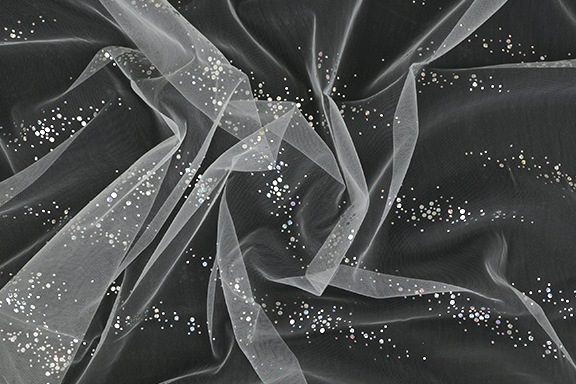 | 詳細 | チュールの上にシールスパンを貼った生地です。 |