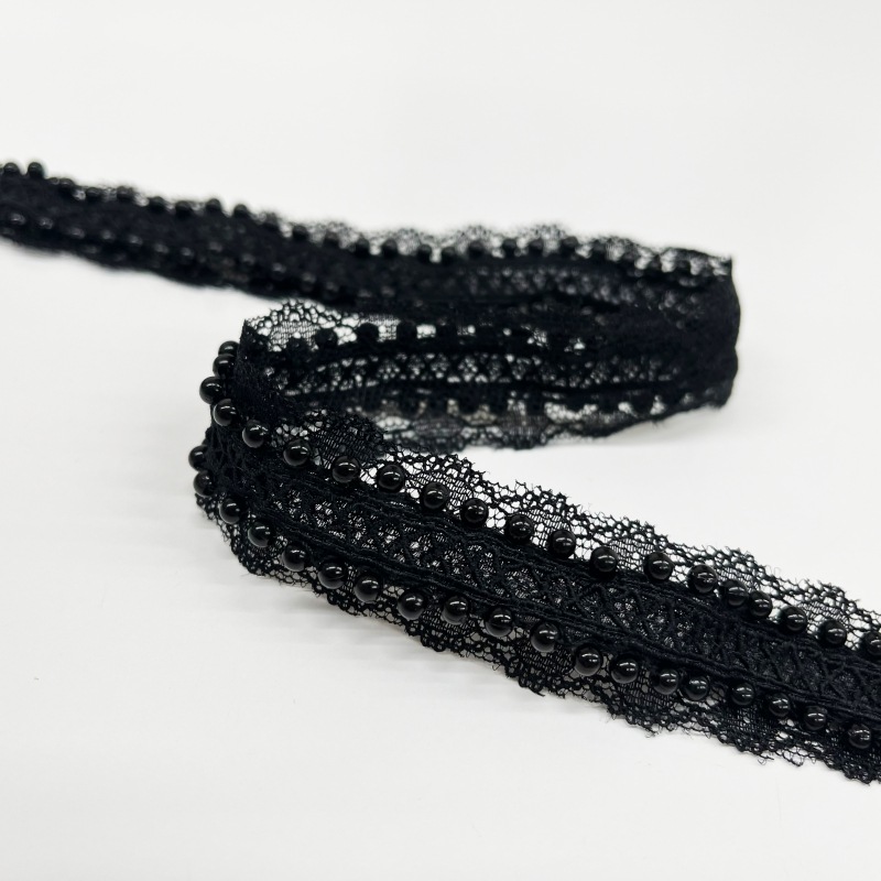 | 詳細 | レースに丸いビーズを縫い付けたブレードです。 中央には編み上げのような模様があり、可愛らしさがあります。 可愛らしさを活かしてヘッドドレスなどの小物や、衣装の装飾におすすめです。 2カットになる場合がございます。 |