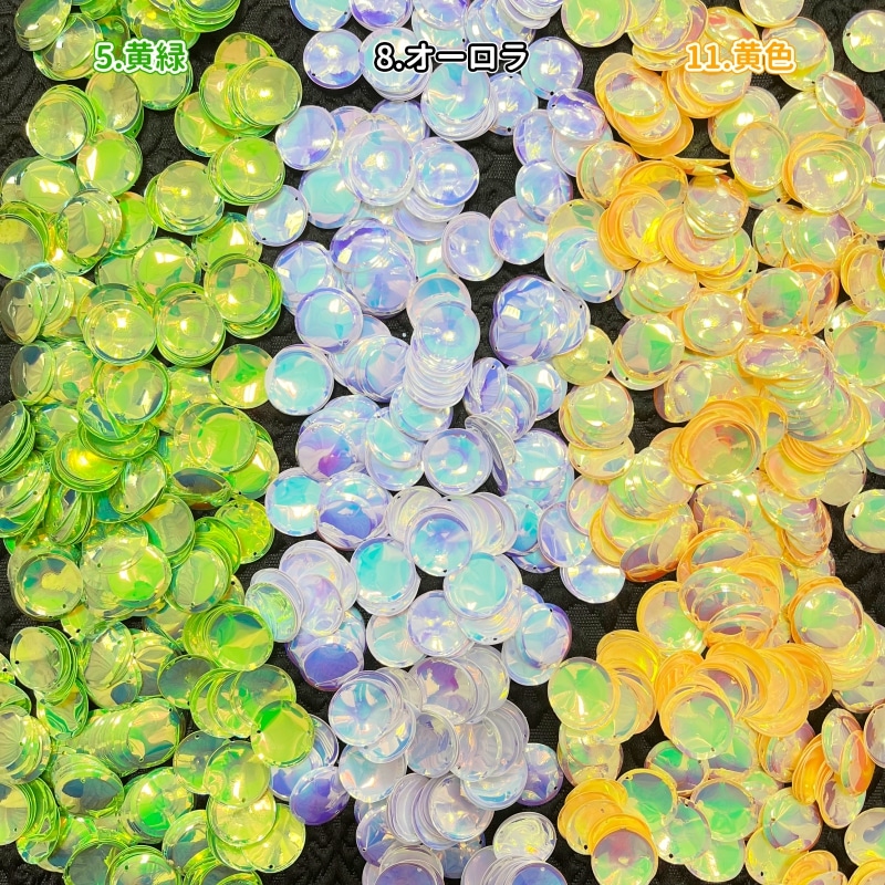 オーロラに光る大きめなスパンコールです 平面ではなく、少々湾曲しているため立体感があります。立体的なため色々な角度から光を反射し、さまざまな色に見えます。 2つの穴が対角線上に空いているため、どちらも縫い付ければしっかり固定され、片側のみ縫い付ければゆらゆらと揺れ、さらに色の見え方が変わります。 手からあふれるほどの量が入り、この価格はお買い得!(写真では女性スタッフの手でに商品を乗せています) ※工場生産中止の為、残り1色となってしまいました!(゚д゚)! 人気商品なのですぐに売り切れちゃうかも!! 只今お求めやすい価格で販売中!! |