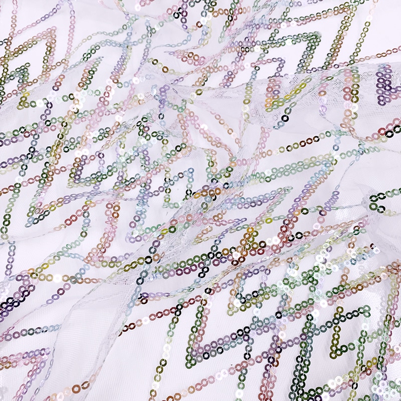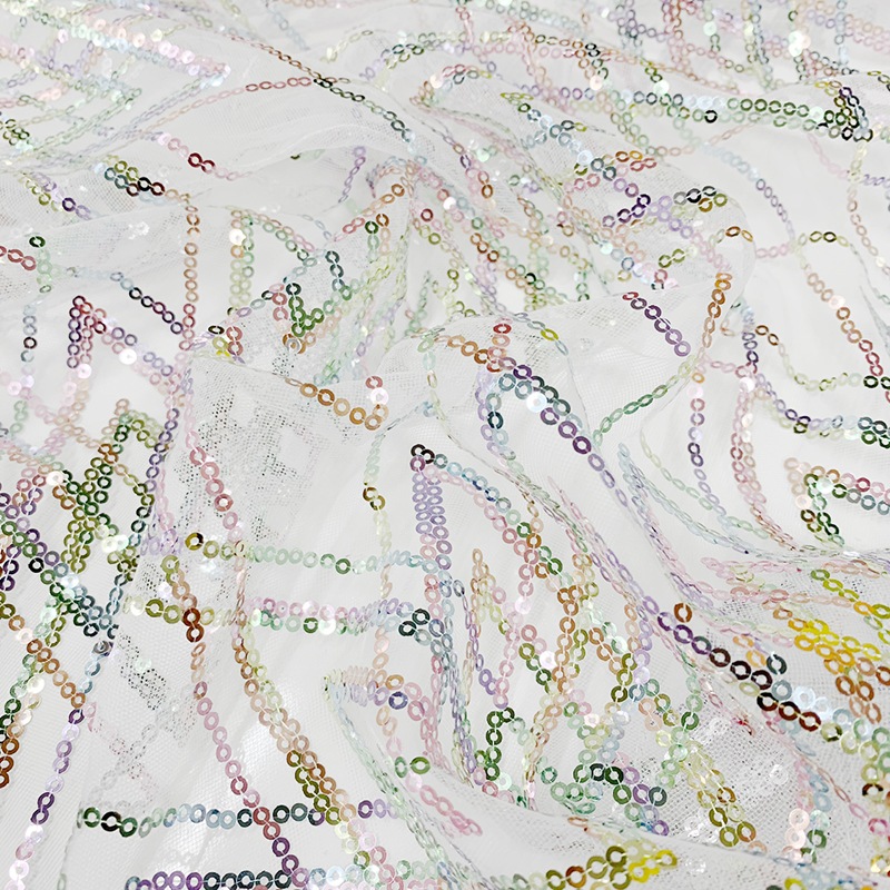柔らかいチュール地にカラフルなパステルカラーのスパンコールを刺繍した商品です。 軽くて透け感があるのでギャザーやフリルにしても可愛い♪ 総柄なので使いやすく直線柄なので甘くなりすぎない! チュール地が淡いカラーなのでアイドル衣装にもお勧め!! |