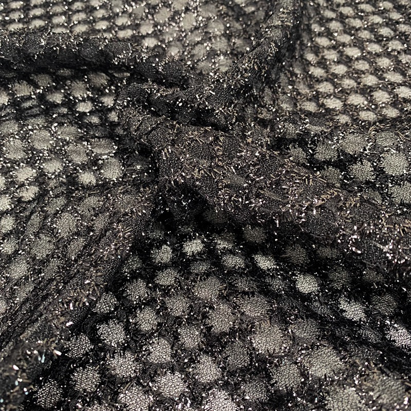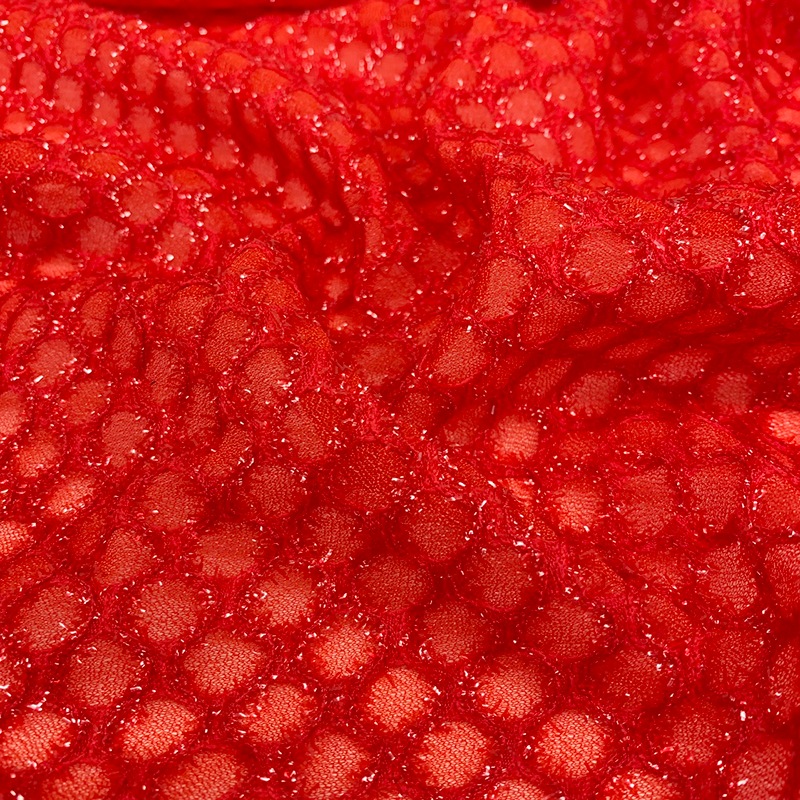 | 詳細 | 柔らかいネットにポコポコした模様が可愛い生地です。 透け感があり横方向に伸びます。 細いラメフィルムが縫い込まれているので光が当たるとキラキラと輝きます。 軽くて柔らかいので衣装だけでなく小物に使っても可愛い♪ |