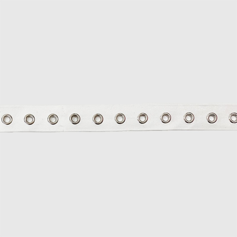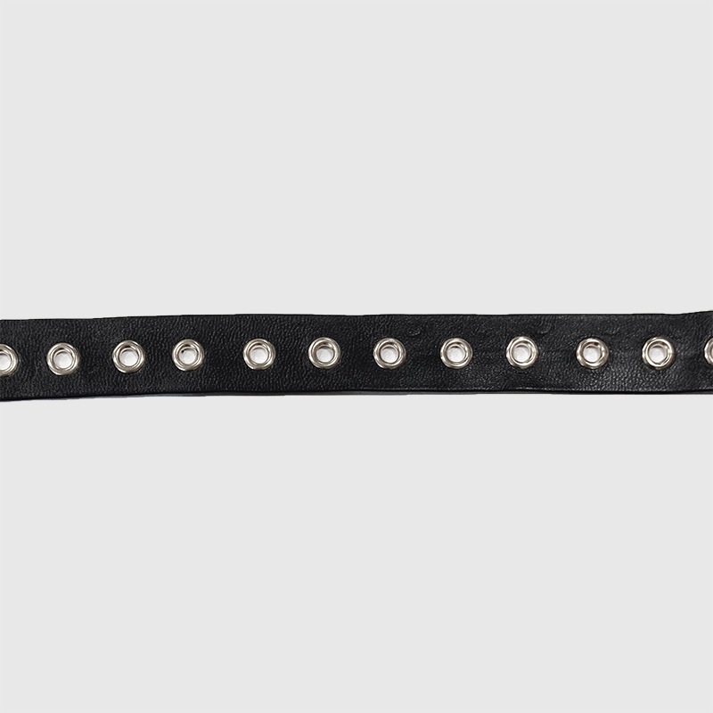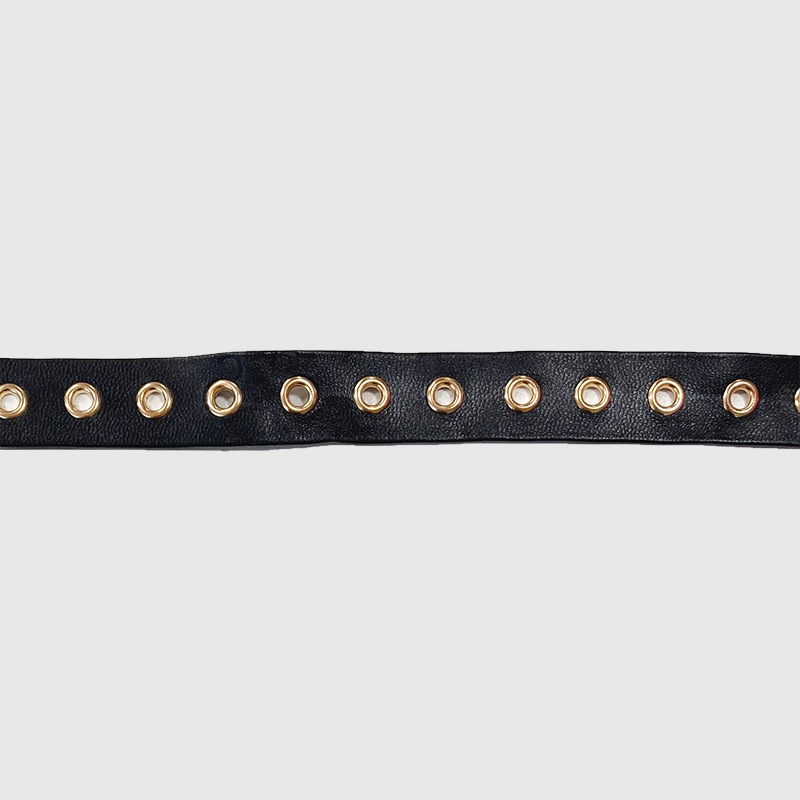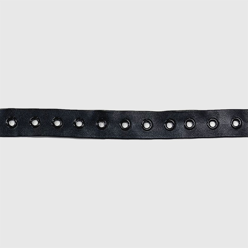 ハトメが付いた合皮ブレードです。 紐を通してコルセットのような編み上げにもお使いいただけます。 |