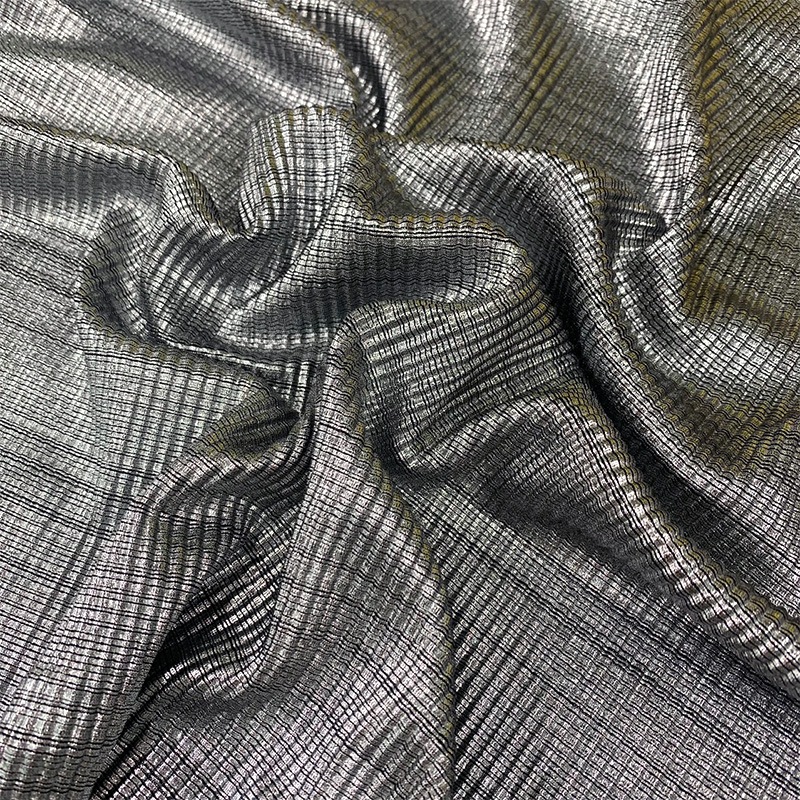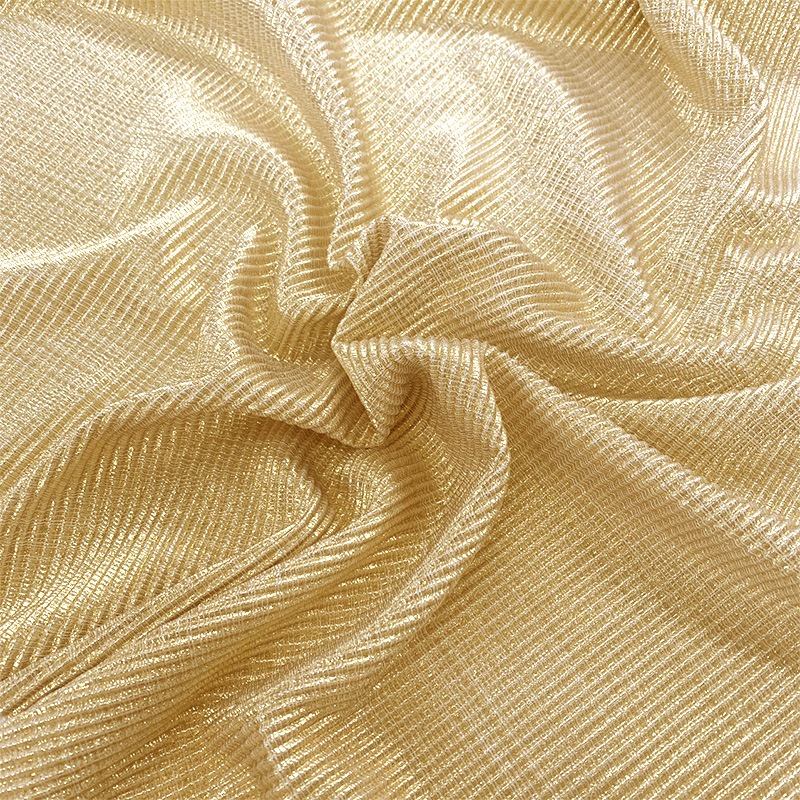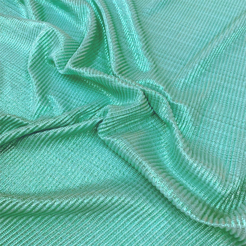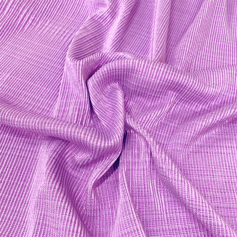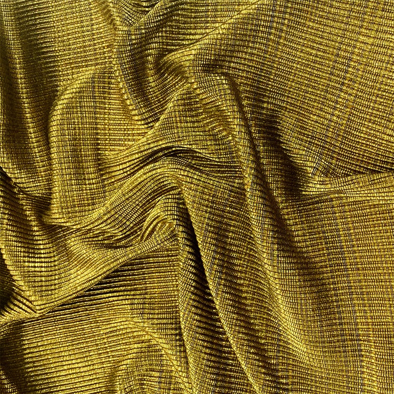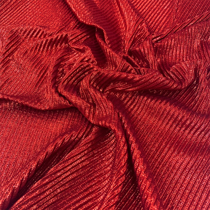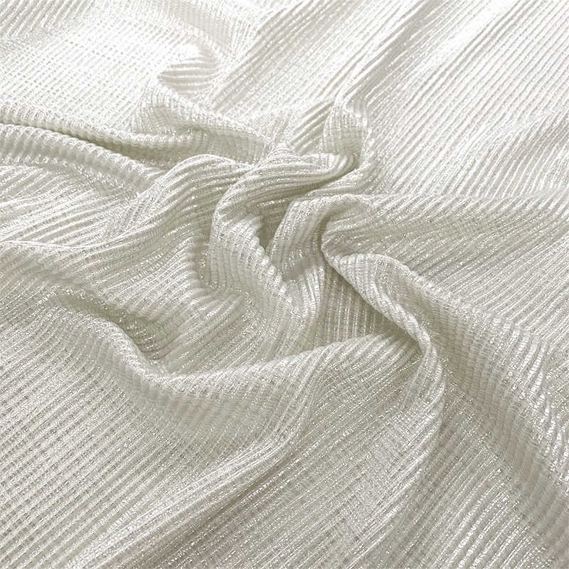 | 詳細 | リブニットの表面にラメ箔を施しプリーツ加工した生地です。 横方向に伸縮します。 薄手で柔らかいニット生地です。 |