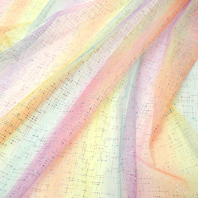 | 詳細 | パステルカラーのチュールに幾何学模様の箔をのせたチュールレースです。 チュールが単色ではないのでこれ一枚でも表情が出ます。 淡いカラーとキラキラがマッチしてとってもファンシー! 柔らかく横に伸びます! 模様が直線のラインなので可愛くなりすぎないところもお勧め!! 衣装だけでなく小物やアクセサリーを作っても素敵!! |
