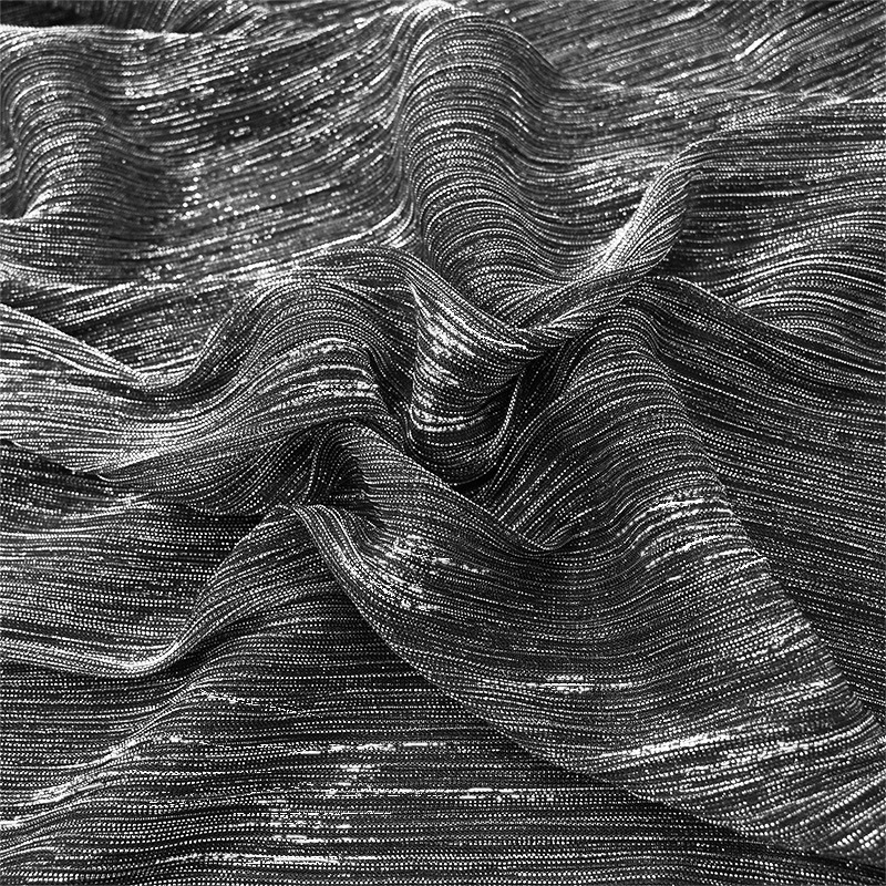 | 詳細 | ラメ糸を編み込んだキラキラニット生地です。 プリーツ加工をしているので角度によって表情が変わります。 透け感があってラメがキラキラしているので衣装だけでなく小物やアクセサリーなどにもお勧め! |