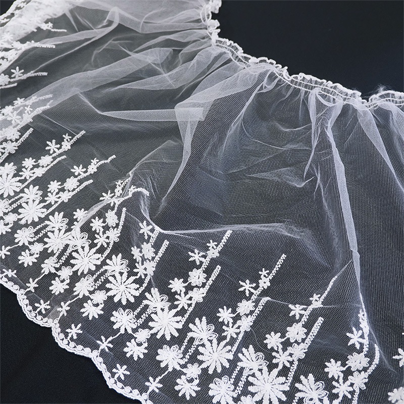 | 詳細 | 広巾のチュールレースに刺繍を施しました。 刺繍部分はスカラップになっているのでそのまま使用できます。 チュール部分はほつれないので必要な所でカットできます。 ギャザー部分は伸縮しません。 ※刺繍部分に多少のほつれが入る場合がございます。 ご理解いただいた上でのご購入をお願い致します。 |