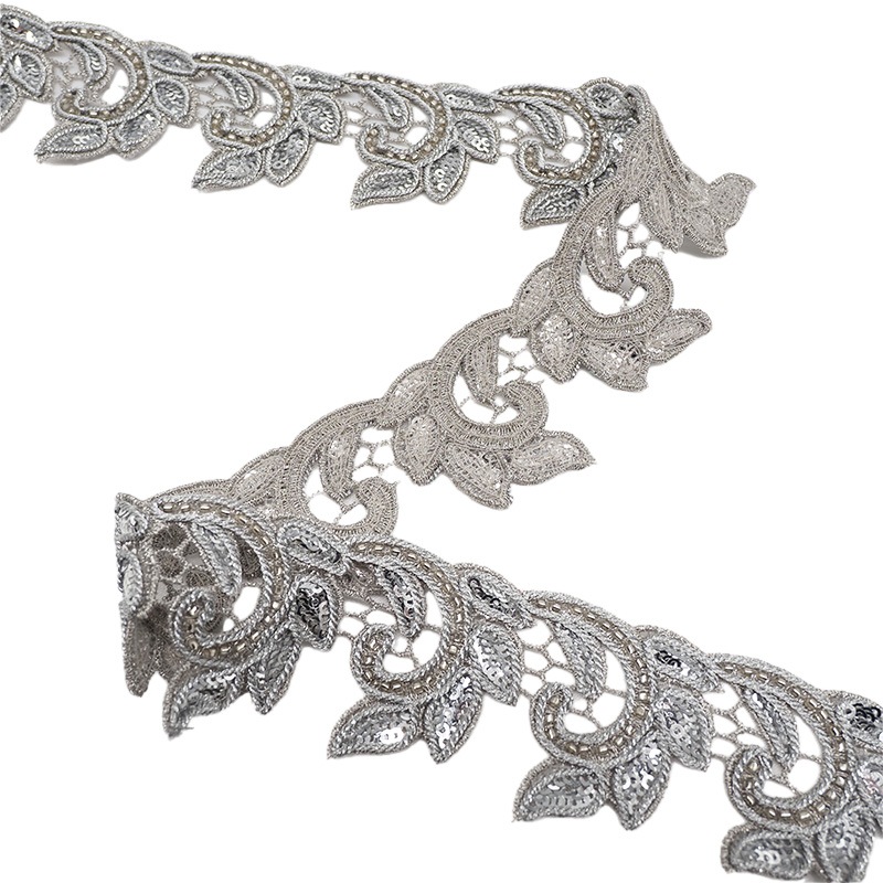 下地にスパンとビーズとコードブレードを縫い留めてあります。 少し厚みがありしっかりとした作りで重厚感があります。 1mで約24~25モチーフになります。 ※工場生産中止の為、残り1色となってしまいました!(゚д゚)! 人気商品なのですぐに売り切れちゃうかも!! 只今お求めやすい価格で販売中!! |