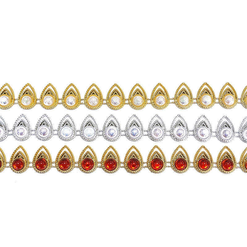 | 詳細 | ナミダ型のパーツをブレード状に繋げました! プラスチックなのでとっても軽くストーンがのっているのでキラキラ輝きます。 1個1個ハサミで簡単にカットできパーツとしても使えます。 貼り付けでも縫い付けでもOK。 |