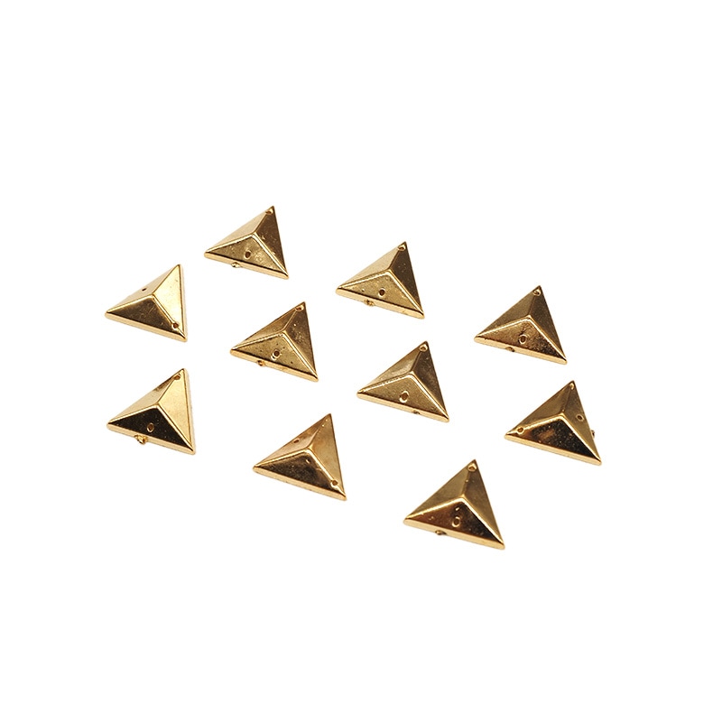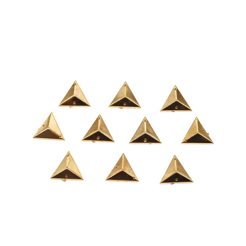 | 詳細 | メタル調の三角型パーツです。 軽いので衣装にたくさん付けても動きを邪魔しにくいです。 2か所に穴が空いている縫い付けタイプですが、ボンド等で貼り付けても使用できます。 ※在庫限りで終了品の為、お求めやすい価格で販売しております ※表面に傷や汚れが入ってしまう場合がございます |