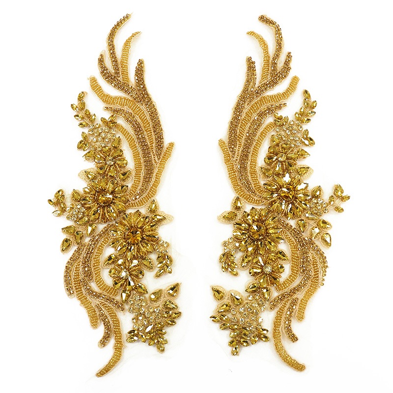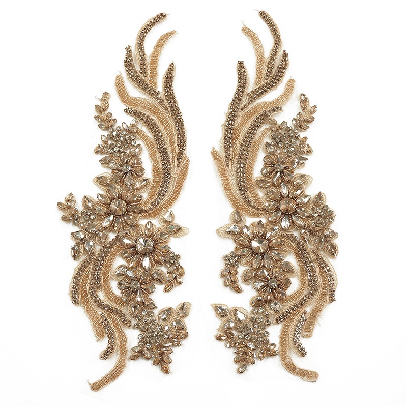 | 詳細 | ガラス石とビーズの大きめモチーフです。 下地が柔らかいチュールなので織り込んで止めるのも簡単! ガラス石をたくさん使用し立体感がありゴージャス!! 1個80g ペアで160gと重さもゴージャス! ドレス映え間違いなし♪ ※ガラス石やビーズが外れている場合がございます。 |