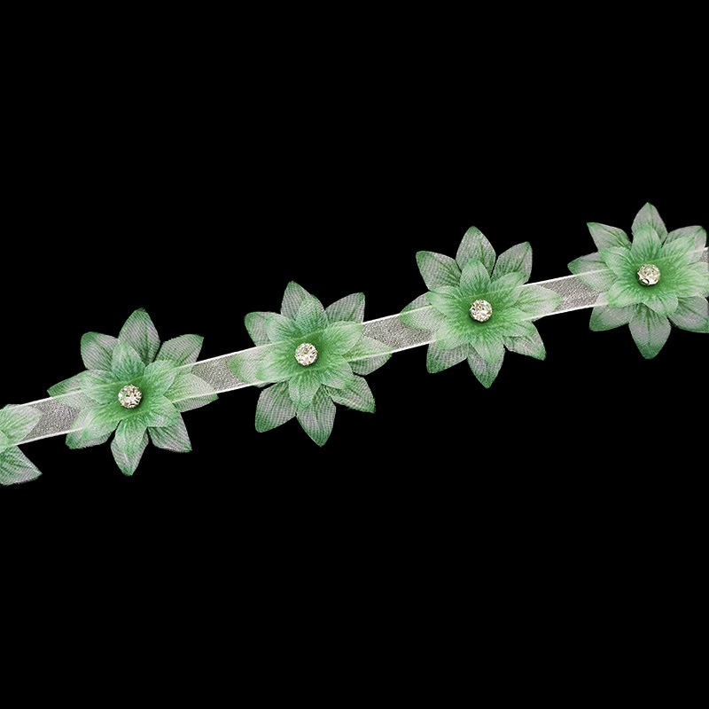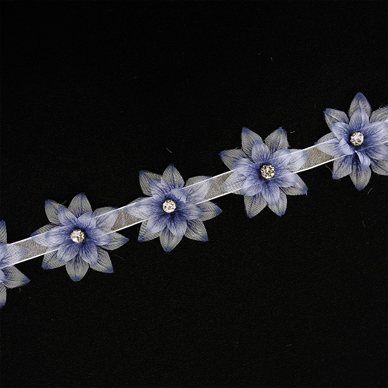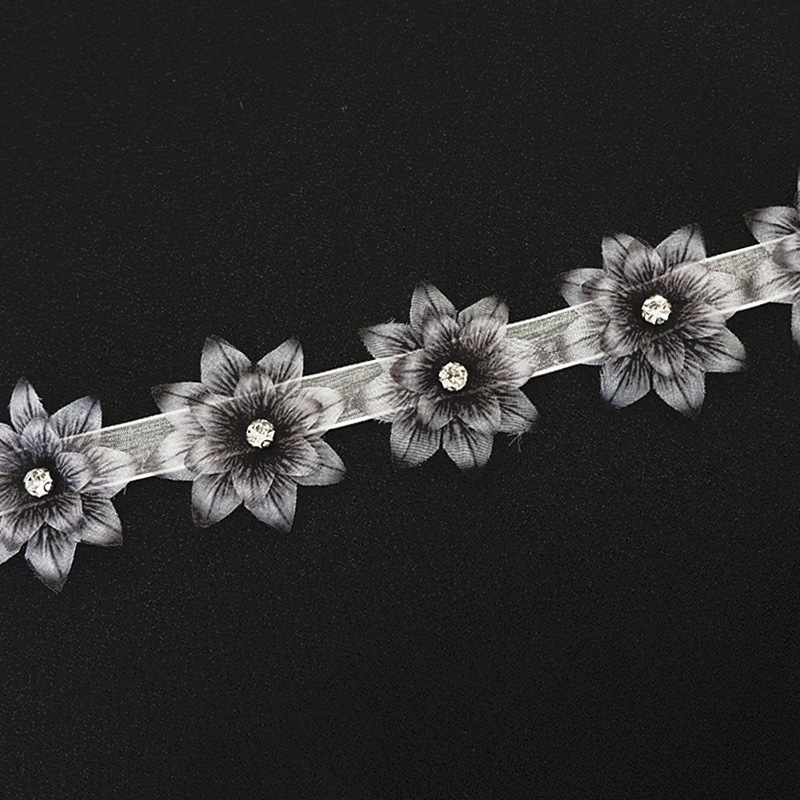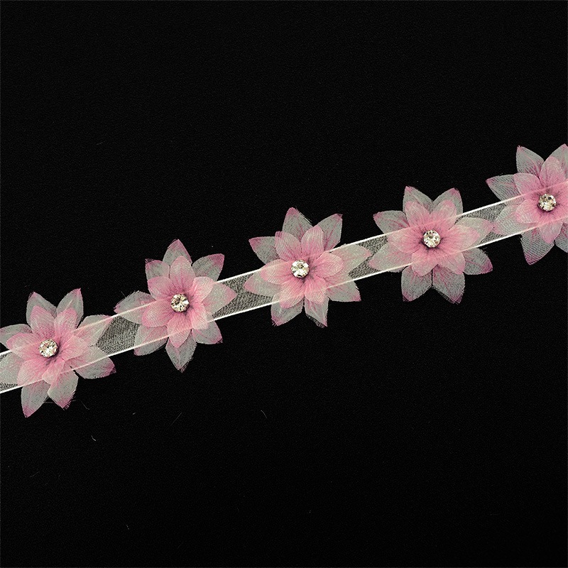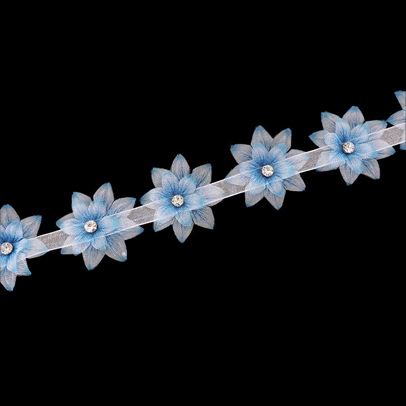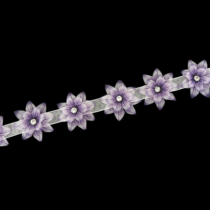 巾:約4.5cm 1m辺り:お花約22個 花びら:ポリエステル100% ラインストーン:ガラス |