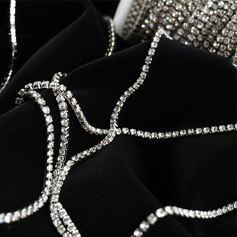 | 詳細 | 軽くてキラキラして華奢なチェーンです。 小さなストーンを1列に繋げました。 チェーンが細いため加工しやすく、ハサミでカットできます。 衣装の装飾や、小物のデコにもお勧めです!! ※石が取れている部分が入る場合がございます。 |