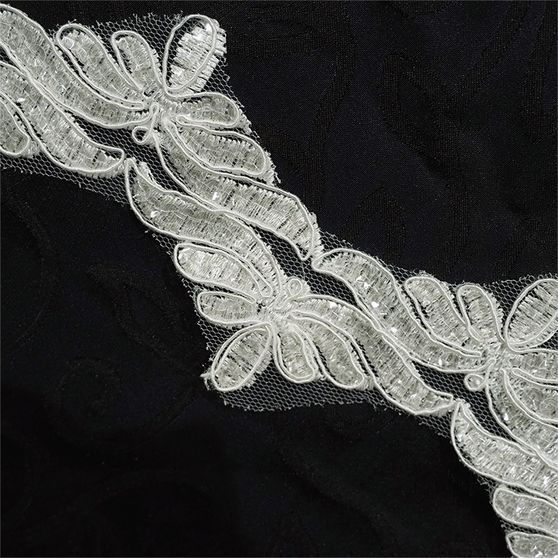 綺麗に縁どられた模様に透明なスパンコールを縫い付けたコードレースです。 小さく切り取ってモチーフとしても使えちゃう♪ ウエディンググローブの裾やレースの上に縫い付けて柄っぽく! 模様に沿ってついているスパンコールが反射して素敵♪ ※スパン外れ・コードレースの縫い外れなどが含まれます。 また、刺繍が緩い部分やほつれている部分が入ることがございます。 |