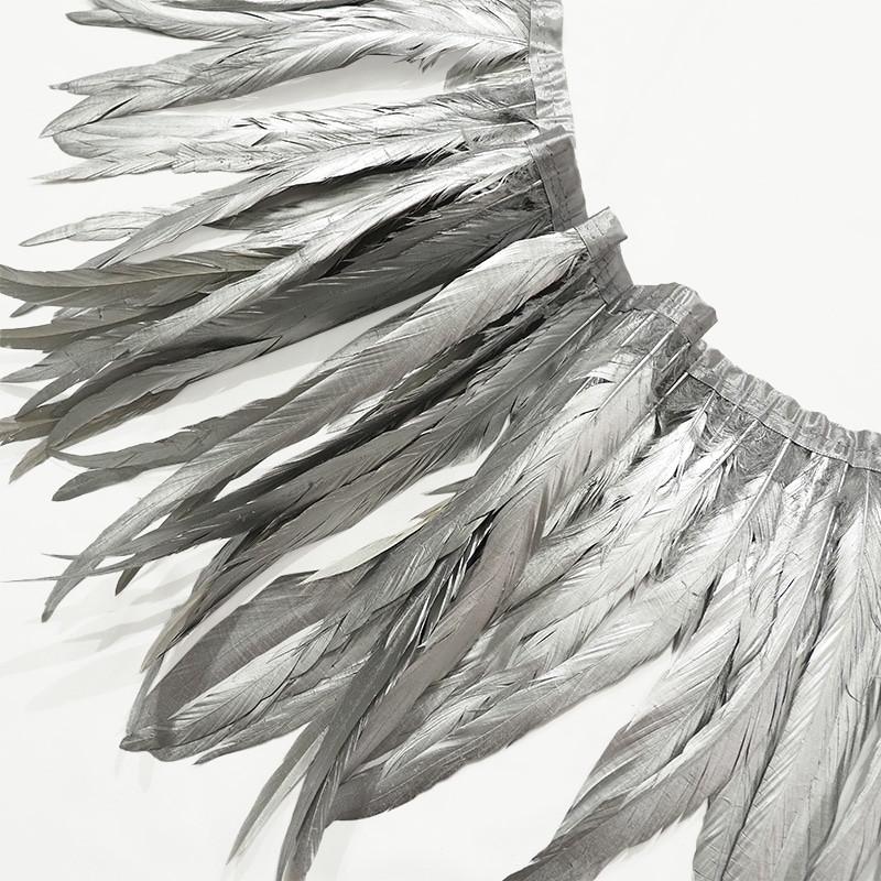尾羽をサテンリボンに縫い留めてフリンジ状にしてあります。 ロングフェザーフリンジのNEWCOLOR。 ギラギラした色が目を惹きます。 1本1本の羽根が大きく存在感もバッチリ!! フリンジ部分を外してバラ羽根としても使用できます。 サンバの衣装や舞台衣装・コスプレ、バック・帽子の飾りやアクセサリーなど幅広くお使いいただけます。 在庫は5反のみ!! ※天然素材を使用している為以下のことにご注意ください ・羽根の大きさや形はマチマチ ・色落ちします ・汚れや傷が入ることがある |