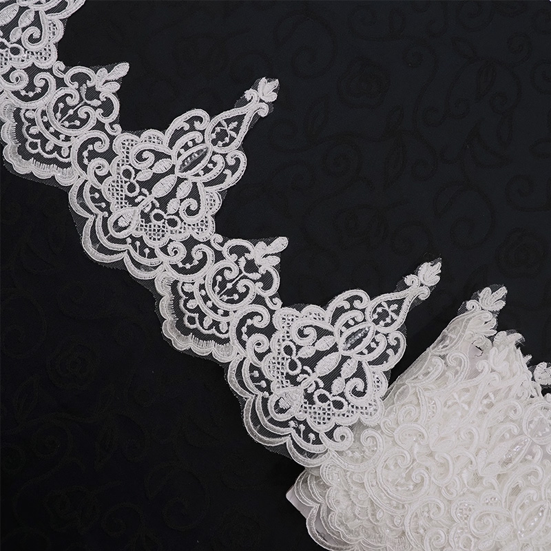 大きさの違う刺繍でできた繊細なコードレースです。 スカラップも柄が交互でかわいい♪ 透明なスパンコールがキラキラと反射してとても綺麗! 裾の装飾に加えたり、インテリアの装飾にも! 様々なシーンでお使いいただけます♪ ※スパン外れ・コードレースの縫い外れなどが含まれます。 また、刺繍が緩い部分やほつれている部分が入ることがございます。 |