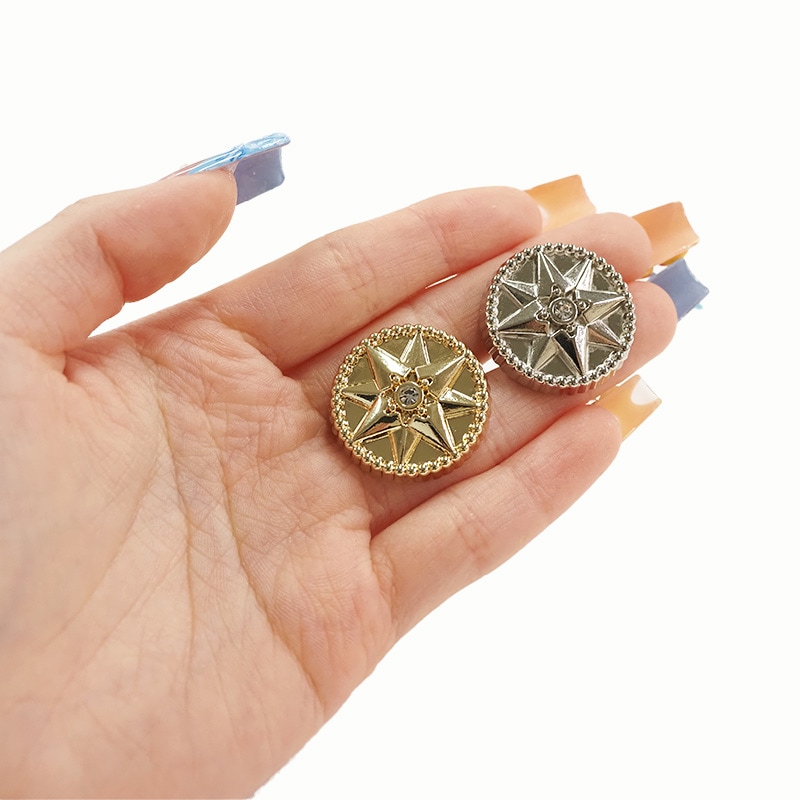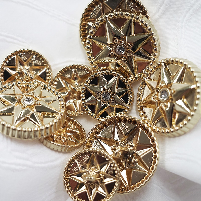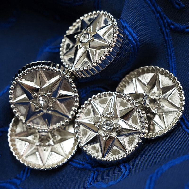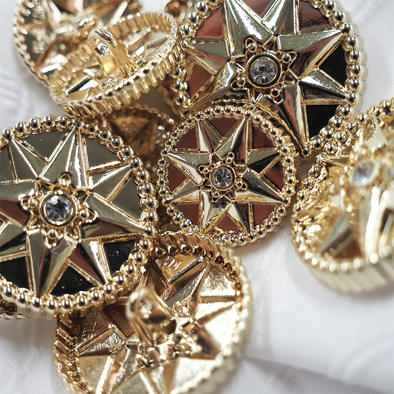 軽くて使いやすい八芒星模様のボタンです。 中央にキラキラ光るクリスタルがかわいい♪ ジャケットやバッグ・アクセサリーの取り入れるだけで上品な印象に! 衣装や作品に華やかさをプラスできます。 ※キズや石がずれている場合がございます。 ご理解いただきご注文お願いいたします。 |