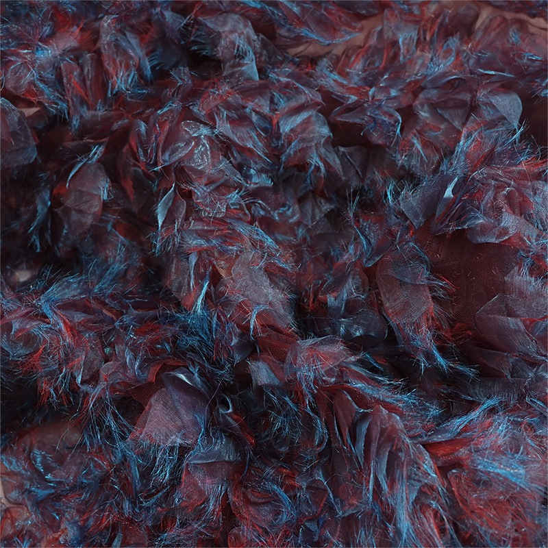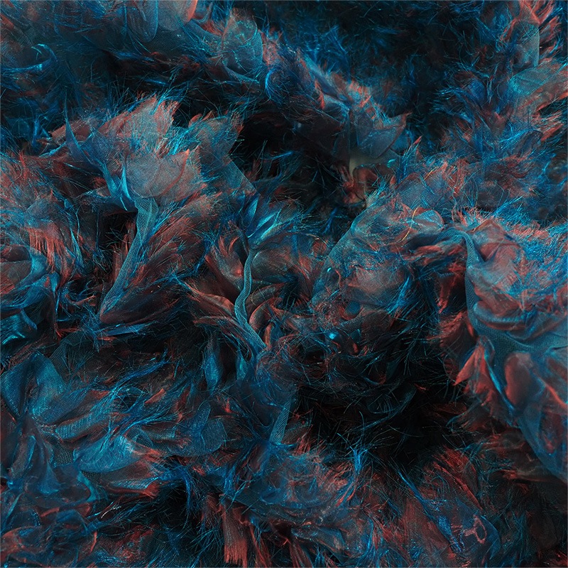 | 詳細 | シャンブレーオーガンジーをリボン状にし、下地のチュールにたっぷりのボリュームで縫い付けました。 ボリュームからは想像ができない軽さで、様々な用途でお使いいただけます! 切りっぱなしにすることで柔らかな風合いを演出♪ シャンブレーオーガンジーにしか出せない複雑な色合いも魅力です! 横方向にやや伸縮します。 ※キズ・汚れを含む場合がございます。 |