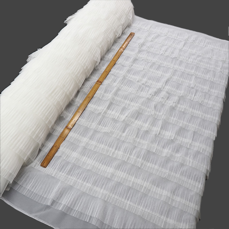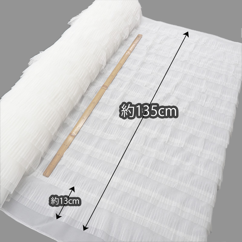| 詳細 | 2段に重なった細かいプリーツが14段のフリルチュール生地です。 透け感があり、とっても軽くて使いやすい♪ 動くたびにしなやかに揺れるので、社交ダンスのドレス ワンピースやロングスカートにもお勧め!! ※キズ汚れを含む場合がございます。 ※ロットによりプリーツの幅や長さが変わる場合がございます。 ご理解いただきご注文お願いいたします。 |