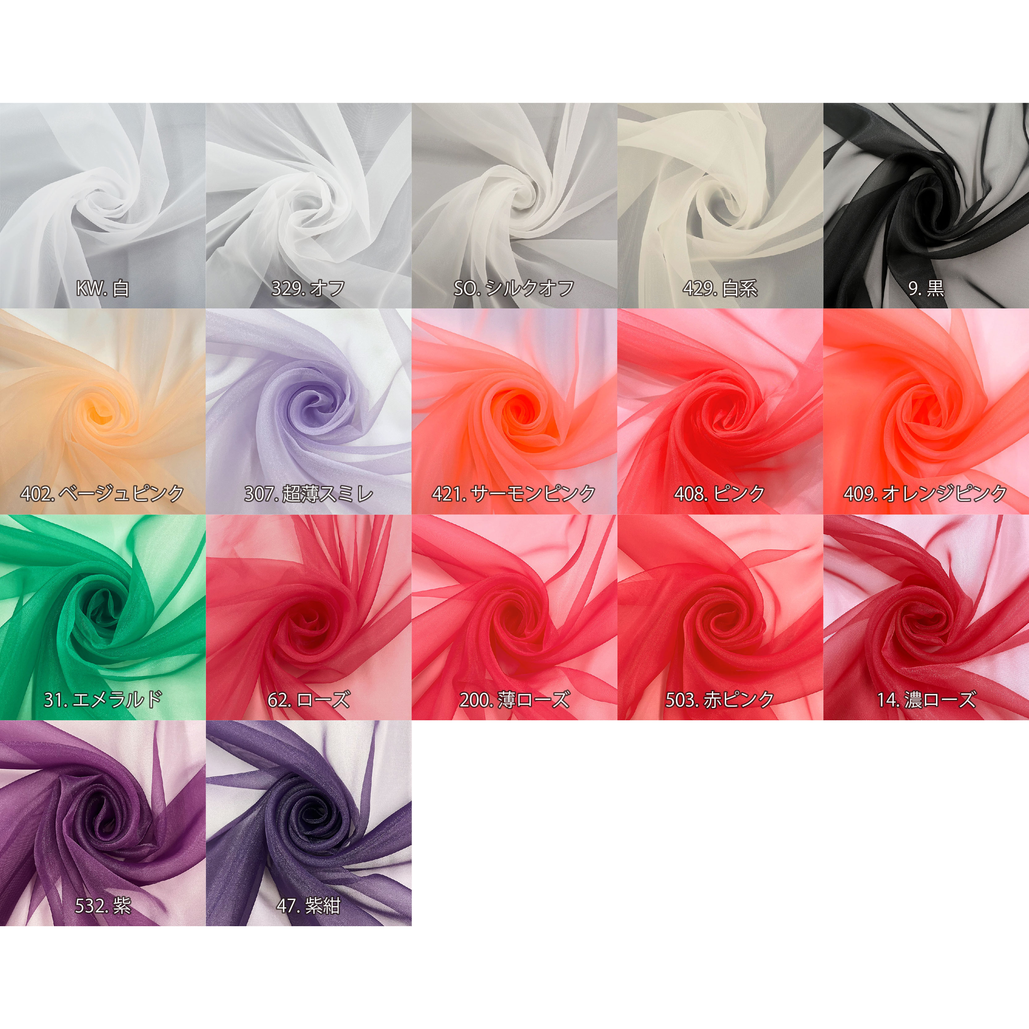 212色展開したスタンダードなオーガンジーです。 |
